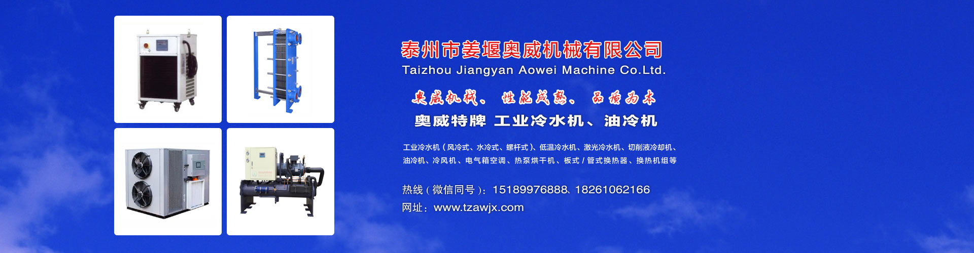 江蘇省,泰州市姜堰奧威機械有限公司,我公司是工業制冷設備,工業冷水機,油冷機,冷水機生產廠家(15189976888),公司集研發、設計、制造、銷售于一體。擁有20多年冷水機,油冷機,風冷式冷水機,水冷式冷水機,低溫冷水機,工業冷水機組,豐富生產經驗,產品以成熟的品質,穩定的性能,獲得到了廣大用的贊譽。